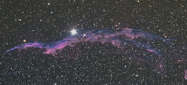 July 2, 2022Veil Nebula (Star of Bethlehem Remanent?)The Star Antares is the brightest star in the constellation Scorpius. Near Antares are two globular clusters. the larger cluster is named "Crab Globular Cluster" and the smaller cluster is designated NGC 6144. The seeing condition on this night was not good. The autoguider kept having problems with clouds. The image is shown below and a larger version can be seen in the Gallery. I used the HyperStar Lens so I could get all three objects in one picture.
